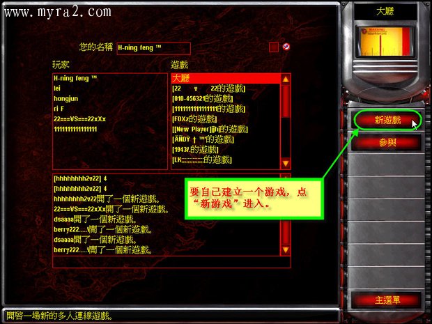9.要自己建立一个游戏,在网路游戏大厅里面,点“新游戏”进入。如下图: